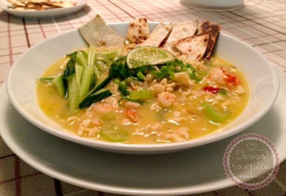 Spontaniškai gimęs receptas, kai norėjosi kažko tokio… kažko iš rytų… Taigi štai ji – aštri tailandietiška sriuba su kokosų pienu ir krevetėmis.