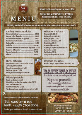 Tausokite savo laiką - "Lux" virtuvė.Dienos pietūs tik £5 (Dienos pietų laikas nuo 12:00 iki 15:00, užsakymai priimami nuo 10:00.
