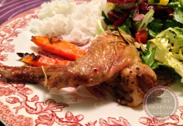 - Dedu į orkaitę ir kepu gerą pusvalandį, kol vištiena įgaus auksinį atspalvį.